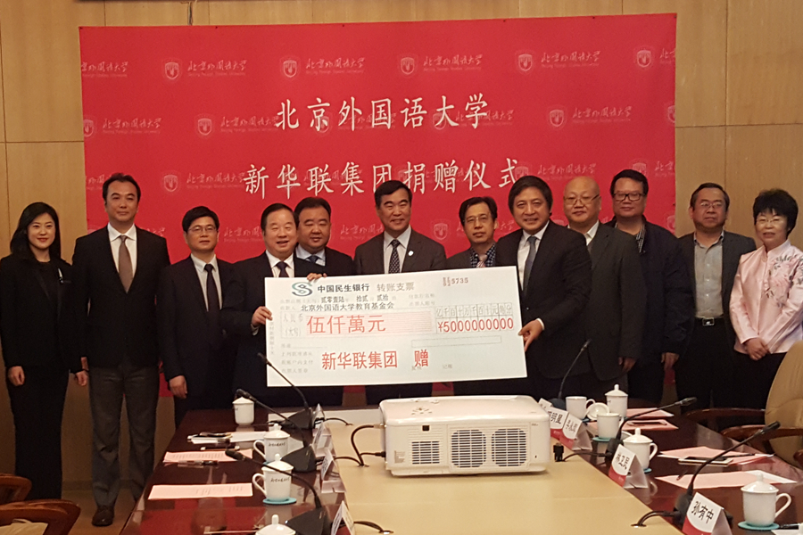 12月20日上午,新華聯集團在北京外國語大學舉行捐贈執行儀式,向該校捐贈5000萬元,推動其教育事業的發展。據悉,新華聯集團總裁傅軍還曾于2015年11月16日向毛澤東主席的母校湖南第一師范學院捐款1000萬元,用于設立新華聯獎學金,并且自2015年開始每年幫助該校50名家庭困難且品學兼優的大學生完成學業。
