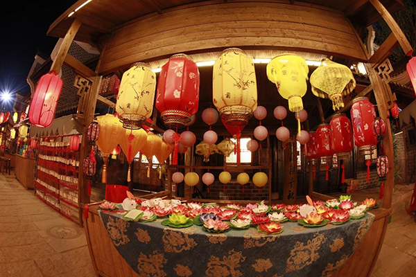 “中秋之夜”晚會以“天涯共此時”為主題,精心設(shè)置了主、副兩個舞臺。主舞臺以銅官窯古鎮(zhèn)水秀景觀為主體。波光粼粼的湖水、絢爛多彩的燈光、皎潔明亮的月色,恰到好處的倒影,共同營造出“水天一色,水月中秋”的詩情畫意。副舞臺設(shè)置在熱鬧的銅官美食街。街上有吹糖人、拉洋片、捏泥人等非物質(zhì)文化遺產(chǎn)項目以及舞火龍、手工月餅、花燈等中秋節(jié)傳統(tǒng)民俗,還原古人過中秋的情節(jié)。銅官窯古鎮(zhèn)優(yōu)美的意境、深厚的文化底蘊與中秋佳節(jié)花好月圓人團圓的氣氛完美融合,相得益彰。